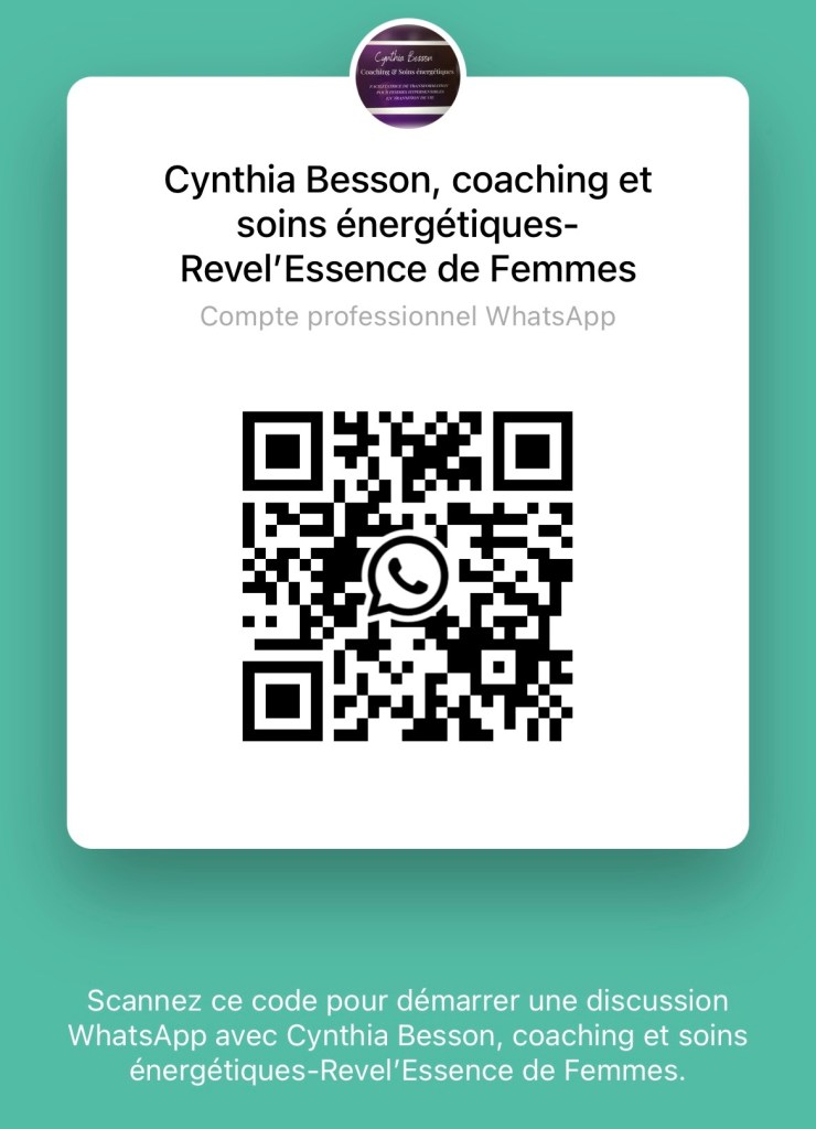Revel’Essence de Femmes – Cynthia Besson, Coaching & Soins énergétiques ne peut garantir aucun résultat avec nos informations, cours, programmes, soins ou coaching. Nos conseils et services ne peuvent en aucun cas se substituer à l’avis d’un professionnel de la santé.
